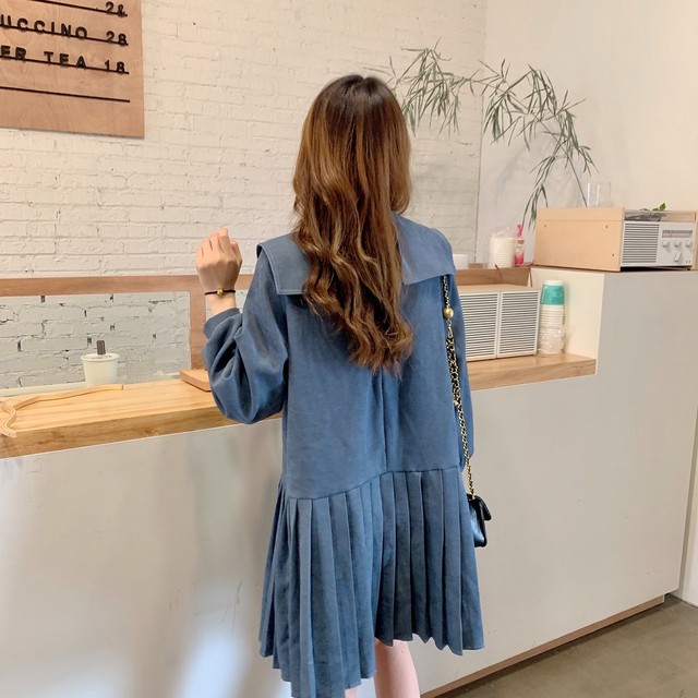 トレンチコート風 ロング丈プリーツスカートワンピ Loner Select 韓国ファッション 海外ファッション セクシーコーデ ギャル服